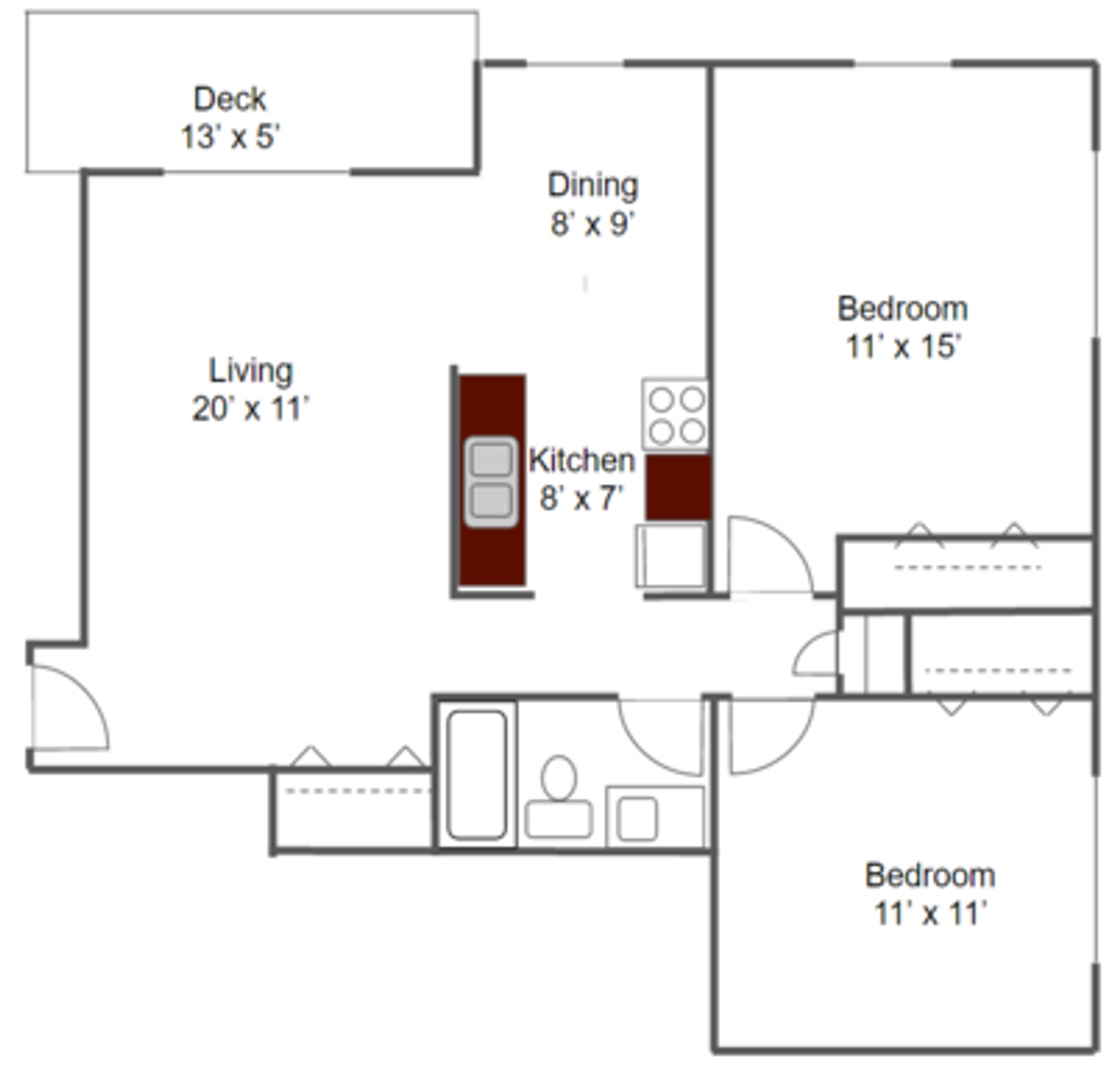 Large updated 2BR unit. Most units have decks. Great location is adjacent to park, near bus line and walking distance to shops and restaurants.